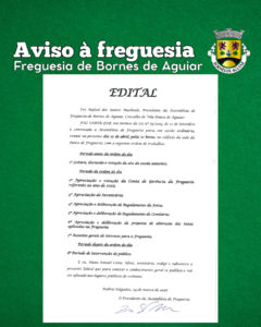1 de Abril, 2026Assembleia de Freguesia de Bornes de Aguiar realiza-se a 10 de abril